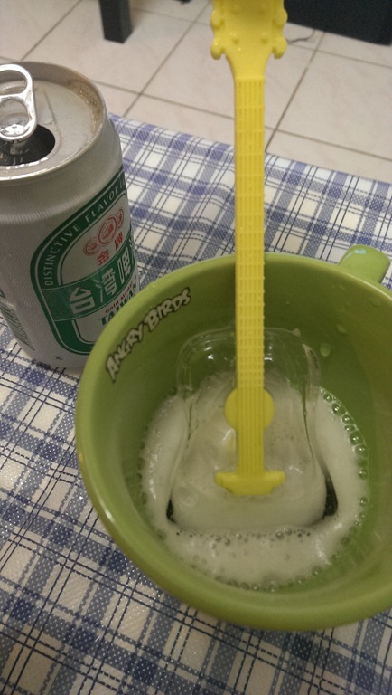 BASS看起來晶瑩剔透好可口!把啤酒倒進去,好像把BASS泡在啤酒裡面.