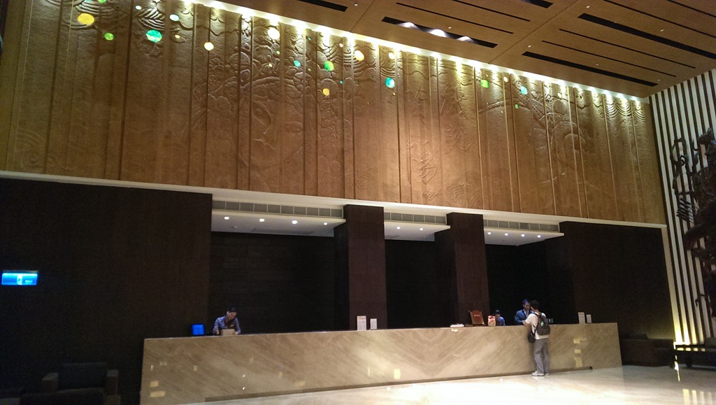 到了晶英酒店之後,Q熊一度不知該怎麼上去,因為他的本體其實是新月廣場百貨公司,平日可以說是店員比人還多.標示也沒有很清楚.但是其實你只要找一台電梯往樓上搭就對了!因為他的櫃台在樓上.像這裡就是接待櫃台了.