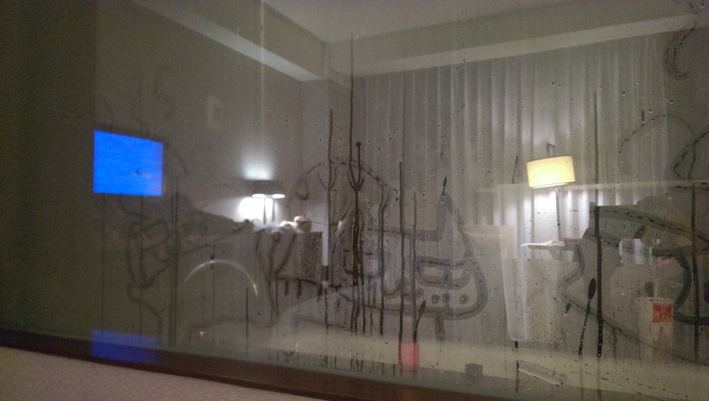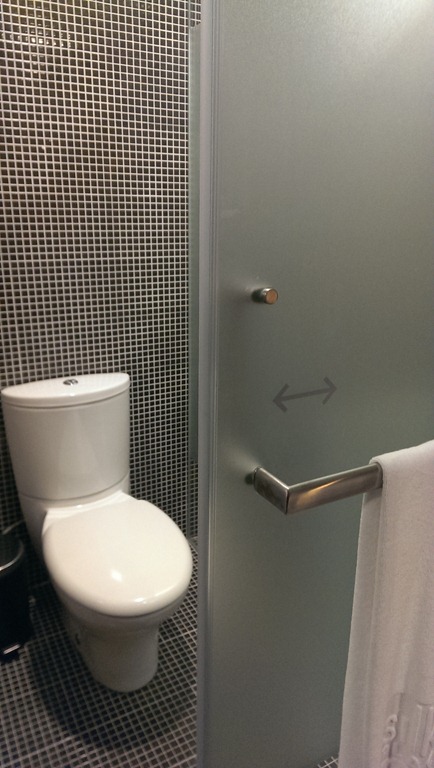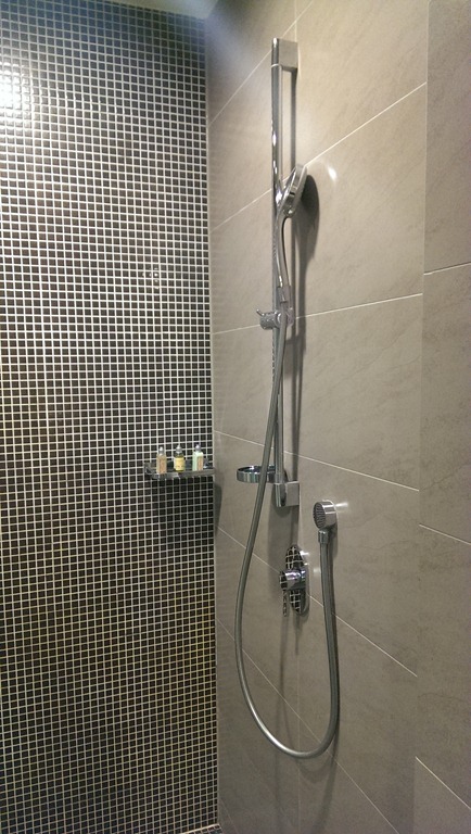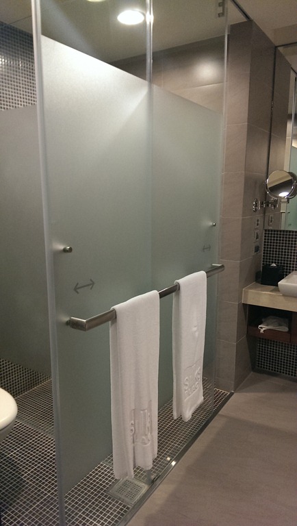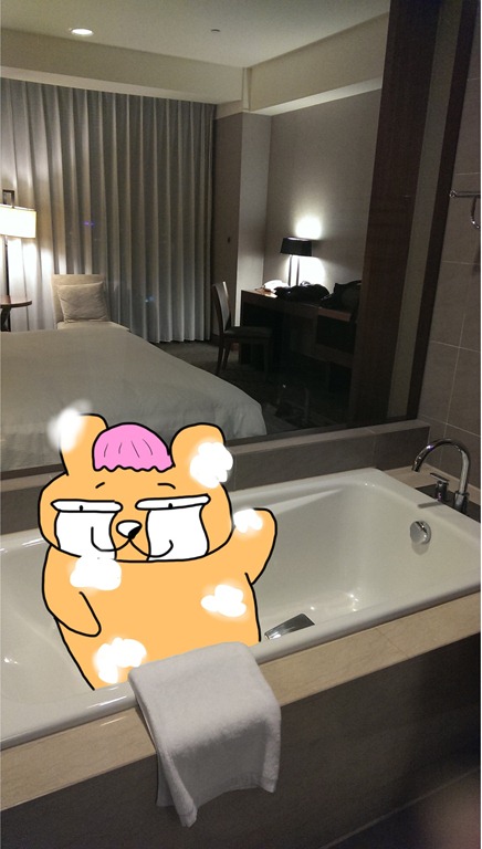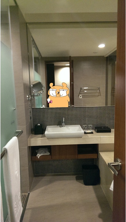接下來就是和大家介紹這間房間最大特點了!浴室--這間房間的浴室佔了將近整間房間面積的一半.裡面活生生的有一個大浴缸,一個淋浴間,一個浴廁間.當然也是乾濕分離的.除此之外!他的浴缸是可以看到房間裡面的,所以你也可以邊泡浴缸邊看電視!當然玻璃上也裝有電動升降布簾,像Q熊一樣不想泡澡被看光光可以把它關起來.