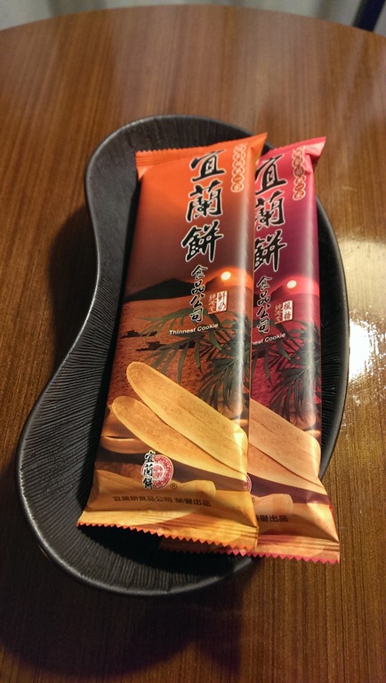 飯店很貼心的提供了兩包宜蘭餅,太好了只好立刻怒開來吃!